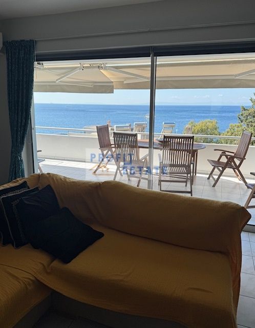 Ενοικιάζεται διαμέρισμα στην Σαρωνίδα 85 m² θέα θάλασσα απεριόριστη Αποτελείται από Σαλοτραπεζαρια κουζίνα 1 Μπάνιο 2 Κρεβατοκάμαρες τζάκι αυτόνομη θέρμανση Πετρέλαιο ερκοντίσιον πρώτου ορόφου μία θέση γκαράζ στην πυλωτή μία αποθήκη 6 m².